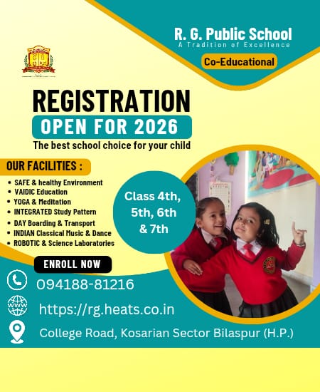 An educational par-excellence with a vision of harmonizing streams of tradition and modernity. This means: producing harmonious personalities striving their way to excellence and perfection. Welcome to R.G. Public School Bilaspur (H.P.)